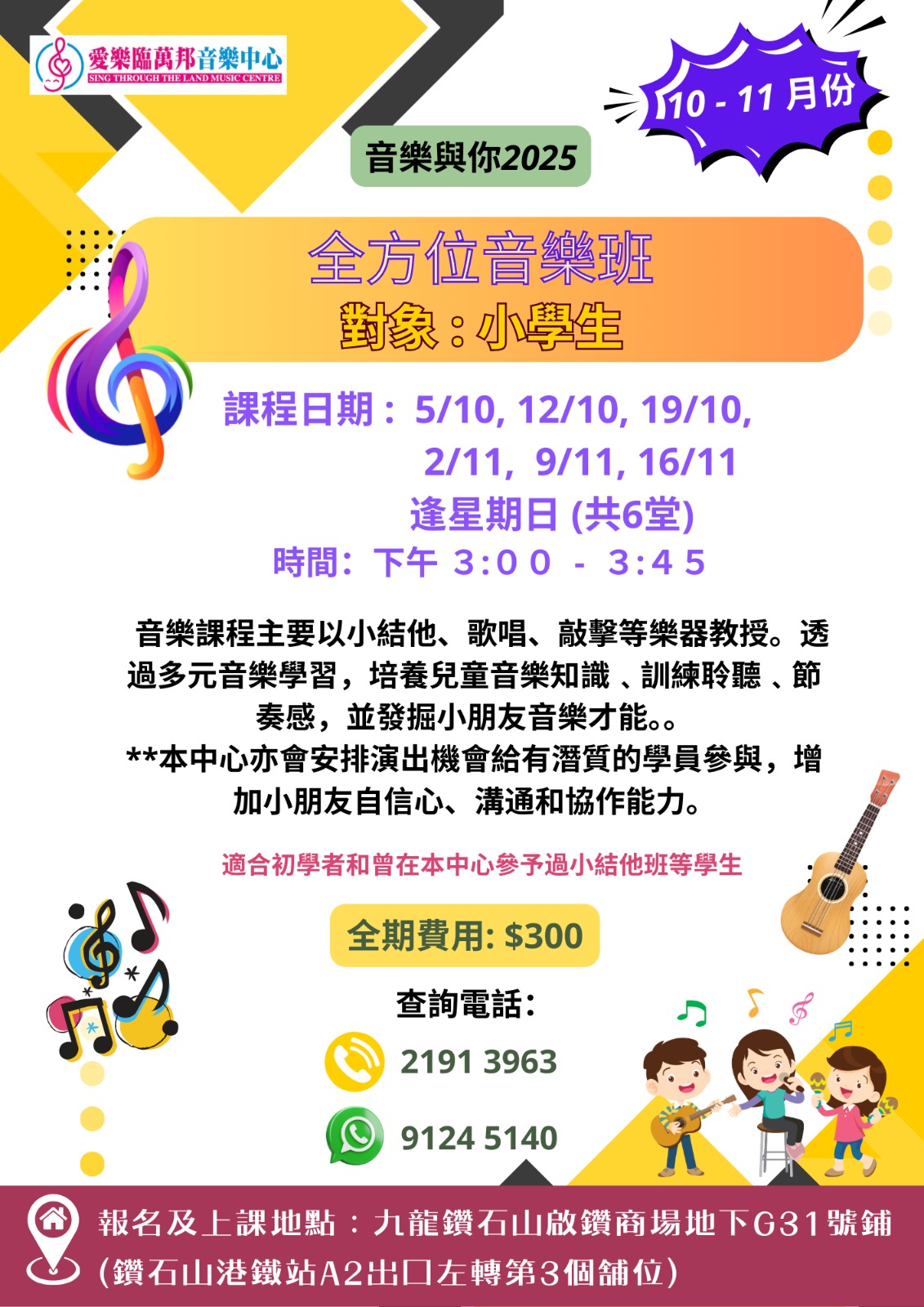 分類搜尋分類搜尋 Select Category 地區 (61) 元朗區 (12) 天水圍 (4) 屯門區 (14) 葵青區 (2) 觀塘區 (33) 活動推介 (47) 興趣班 (48) 關於我們 (1) 香港神的教會 (8) 最新消息 課程搜尋 愛樂臨萬邦音樂中心開辦了全新課程,歡迎查詢及報名!
