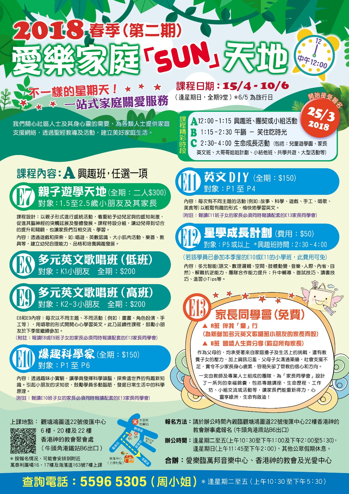 課程日期 : 逢星期日,15/4-10/6/2018 (共9堂) *6/5 旅行日